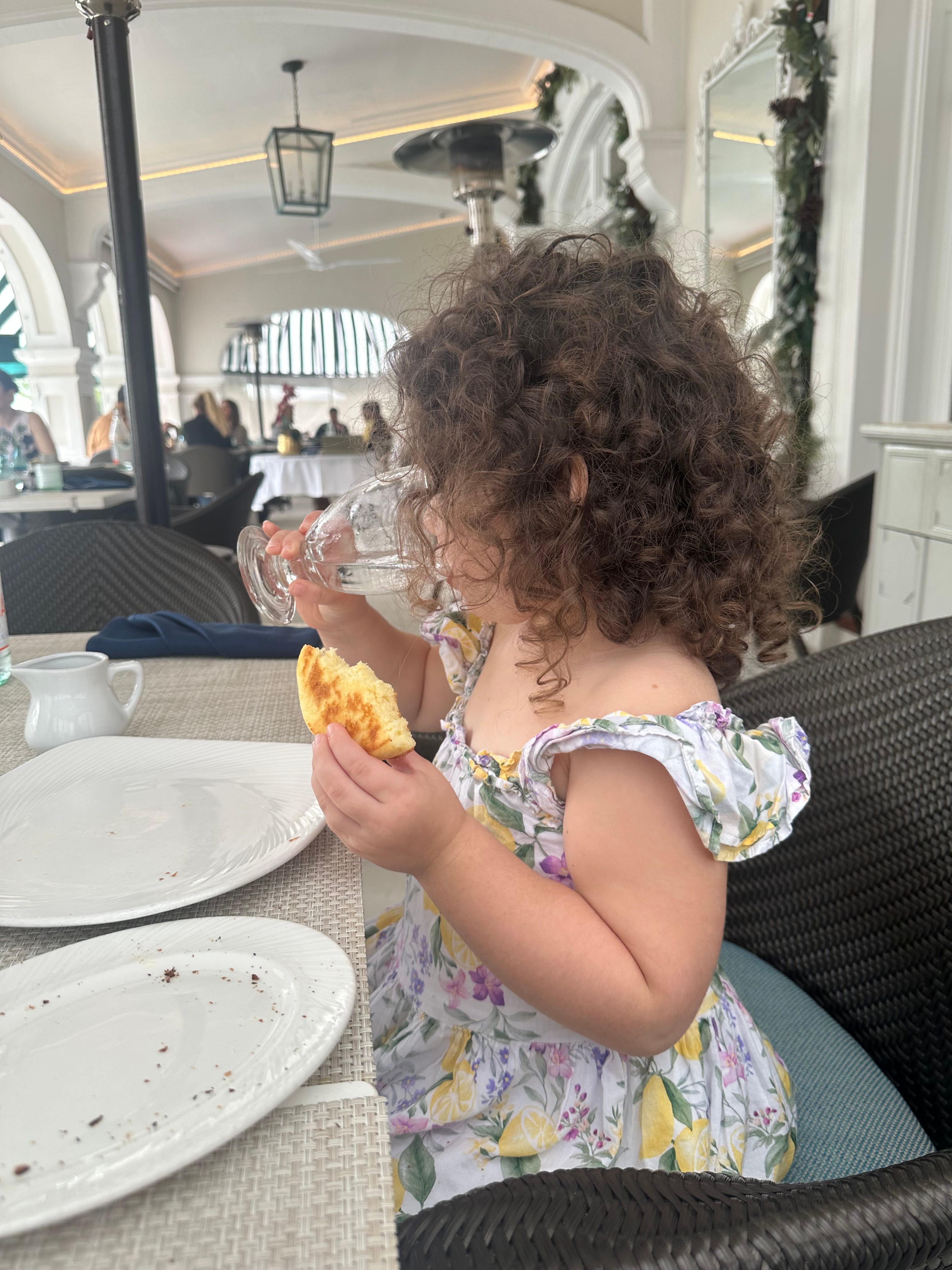 Brunchin’ with my little bestie. We spent 5 nights in a hotel because of the potential mold sitch in our current rental in Bermuda. And Aisy girl loved the hotel life haha. Don’t blame her!