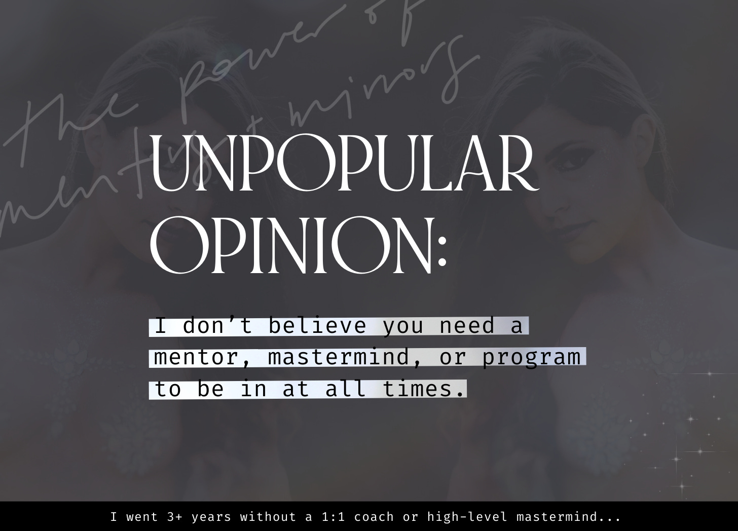 I don’t believe you need a mentor, mastermind, or program to be in at all times.